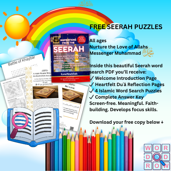 Discover Seerah through interactive word search puzzles. Ages 8+